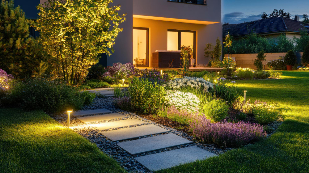 Installation and upgrades of exterior lighting including entry lighting, pathway illumination, and accent fixtures to improve safety, visibility, and nighttime curb appeal.