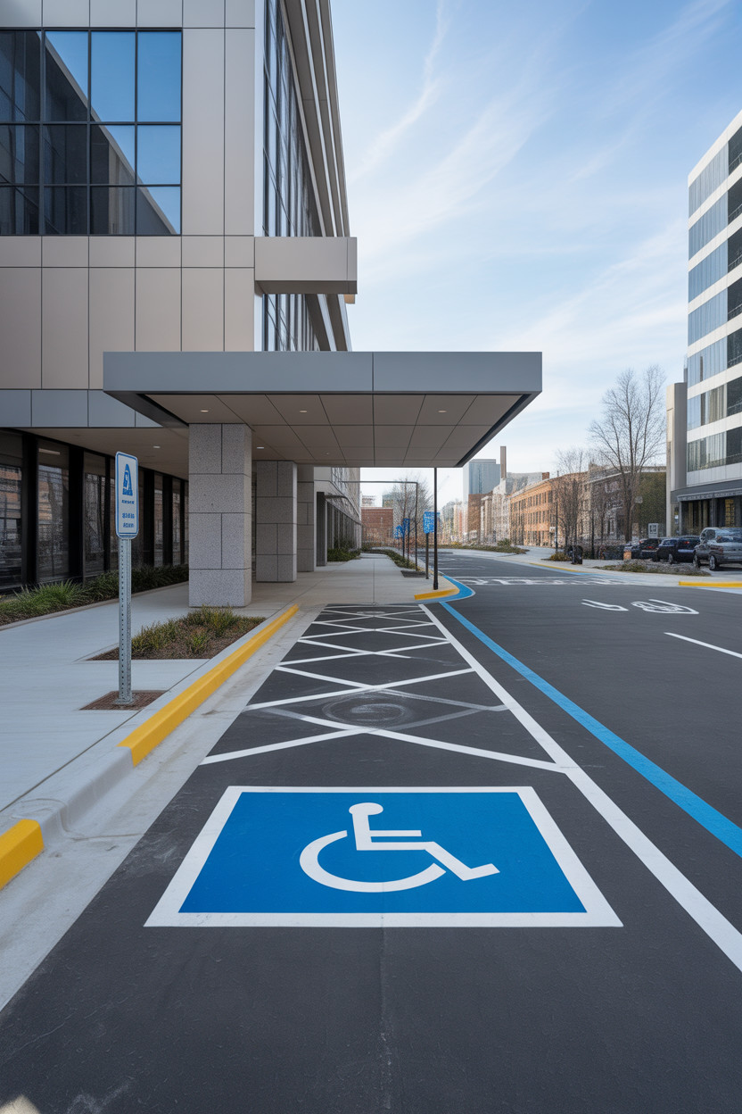 Construction and correction of accessible parking stalls, striping coordination, curb ramps, signage, and exterior access components as required for ADA compliance.